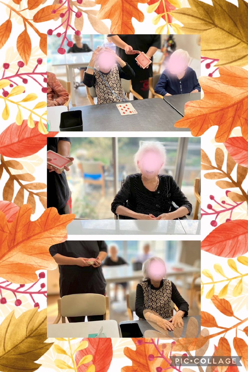 今回の愛燦燦西永福では、テーブルを囲んでトランプを使ったレクリエーションを楽しみました。たかがトランプ、されどトランプ。指先を使う動作は立派な脳の活性化に繋がりますし、何より皆さんの心理的な刺激やコミュニケーションを引き出すのに最高のツールなんです!