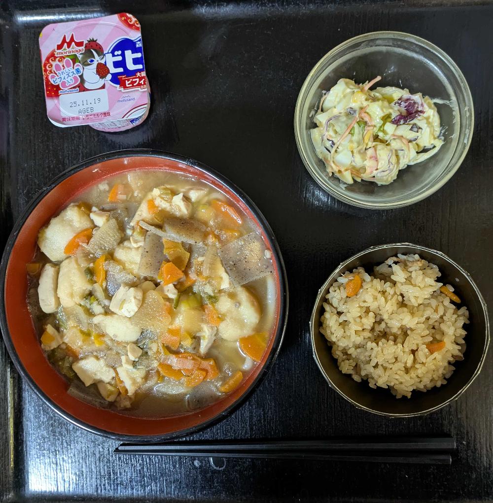この日の昼食は皆様と調理レクを行い、秋の味覚をふんだんに取り入れたメニューをご用意しました。