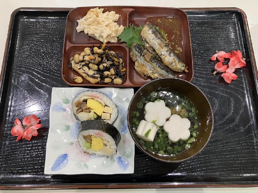 今年のメニューは普段のお食事に加えて、食べやすくカットした「恵方巻」とつみれ汁。