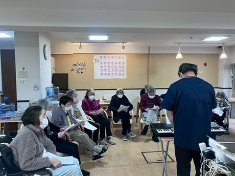 そんな雪の翌日、2月8日にはキーボード演奏に合わせた歌のレクリエーションを行いました。
