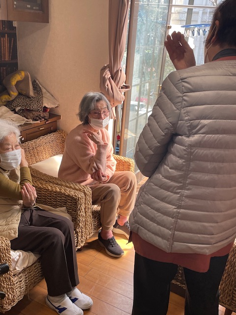 まずは、ディサービスでは来所し、落ち着いてから、皆様の健康チェックをいたします。その後に、午前中の全身体操を行ないます。