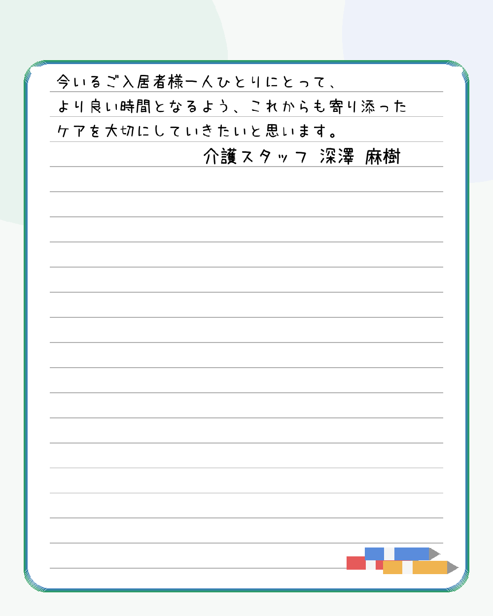 これからも寄り添ったケアを大切にしていきたいと思います。』