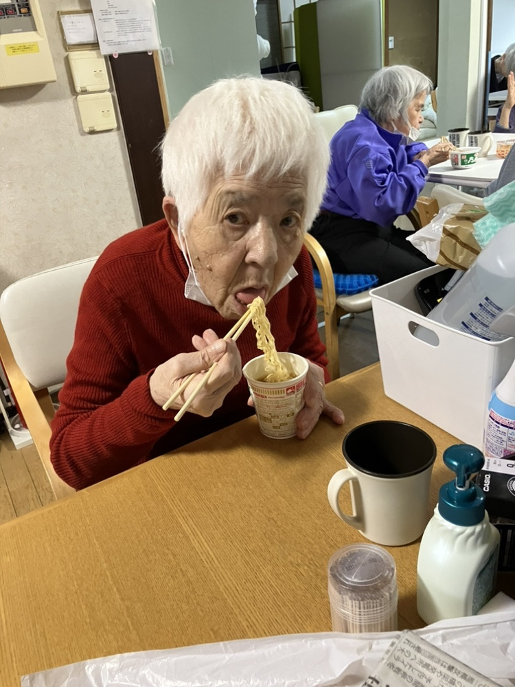 そして……運動のあとは、話題の(?)**謎のレクリエーション「ミニラーメンを食べる会」**を開催! 「えっ、食後なのに?」という心配をよそに、皆様ツルツルと良い音を立てて完食。やっぱり、美味しいものは別腹ですね。