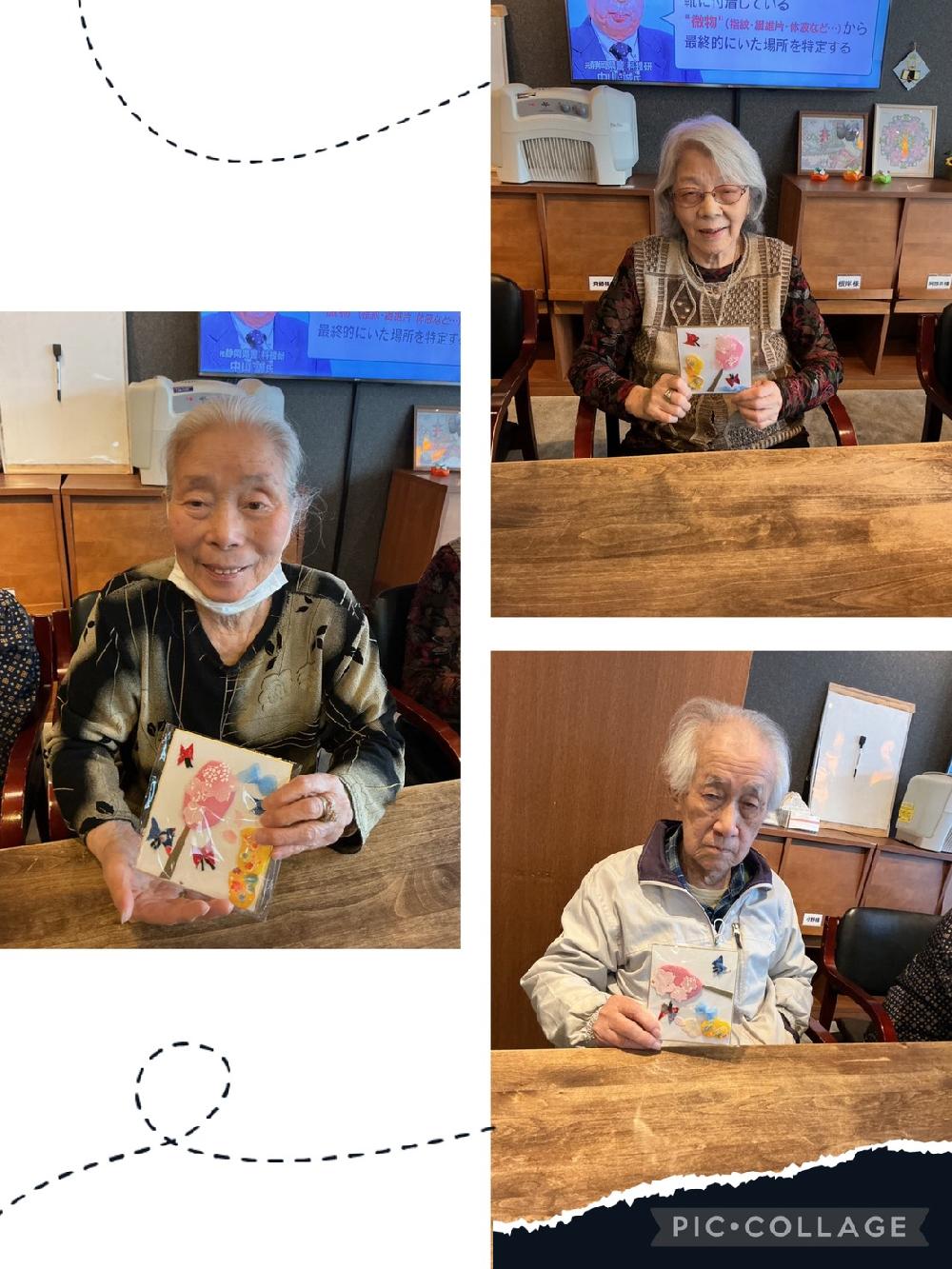 「いいのができたわ!」「お部屋に飾るのが楽しみ」と、完成した作品を手に取って喜ぶ皆様の笑顔は、満開の桜のようにキラキラと輝いていました。