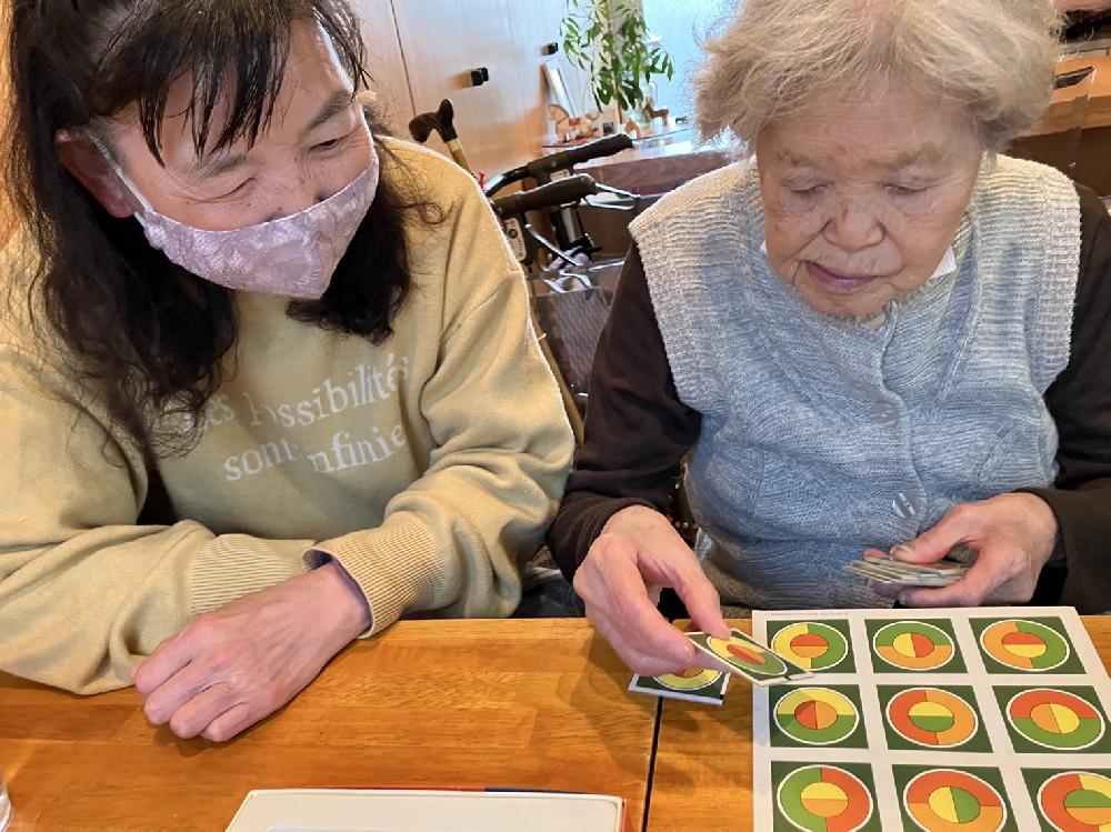 今回はテーブルを囲んで、カードを使った脳トレレクリエーションを実施しました。