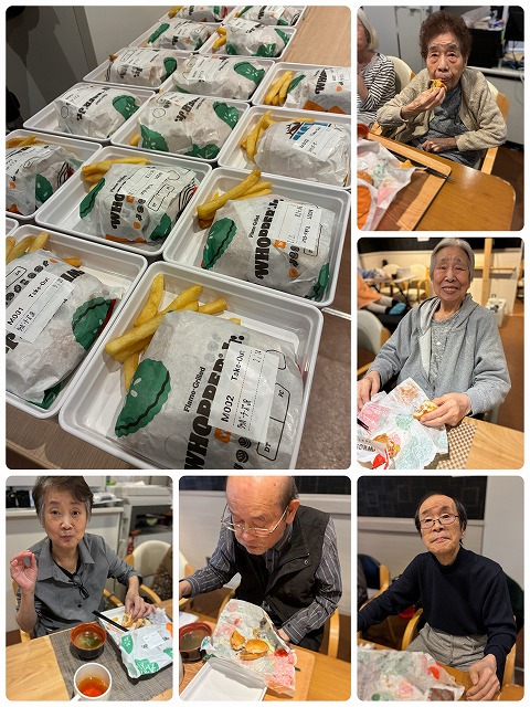 みんな大好きバーガーキング!かなりビッグサイズで豪華満腹コースですが、みなさまぺロリ完食。ニコニコ笑顔で大喜び♪たくさん笑って免疫力もupです♪