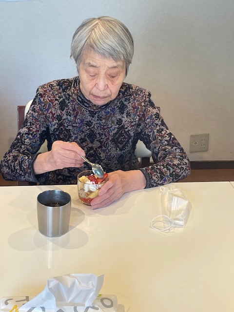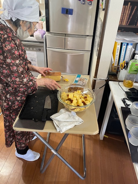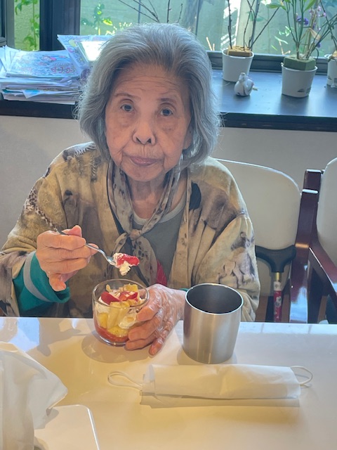 さて、今回は、オヤツレクリエーションのご様子をお伝えします。豪華な手作りオヤツです。作り手は、やはり都立大学ビレッジ自慢のシェフでもあるご利用者様です。