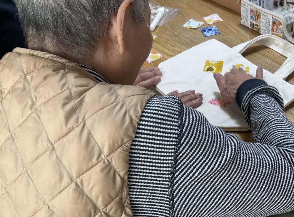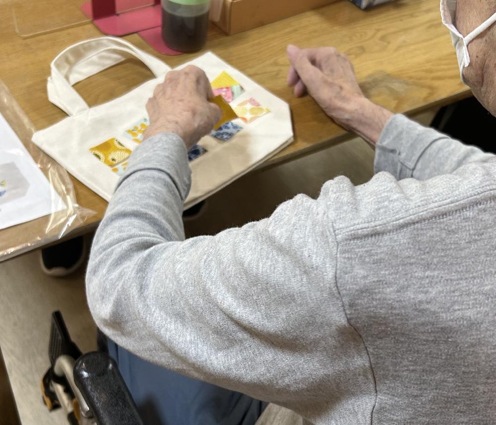 トートバックに飾りつけを行っております。
