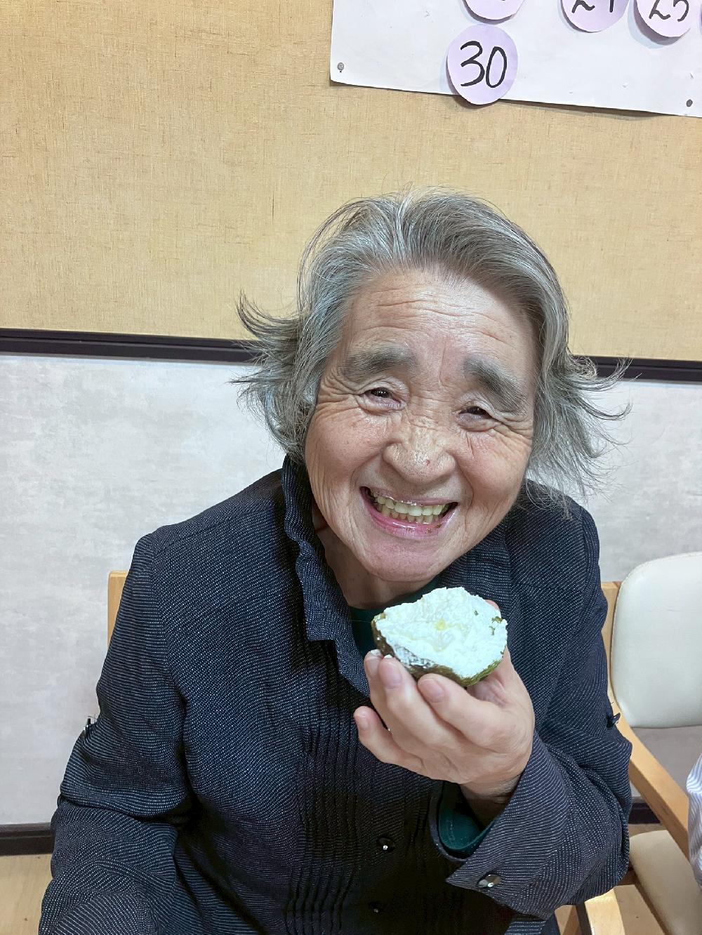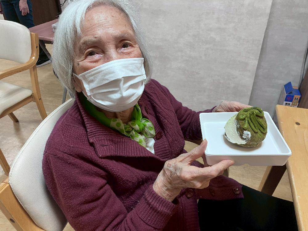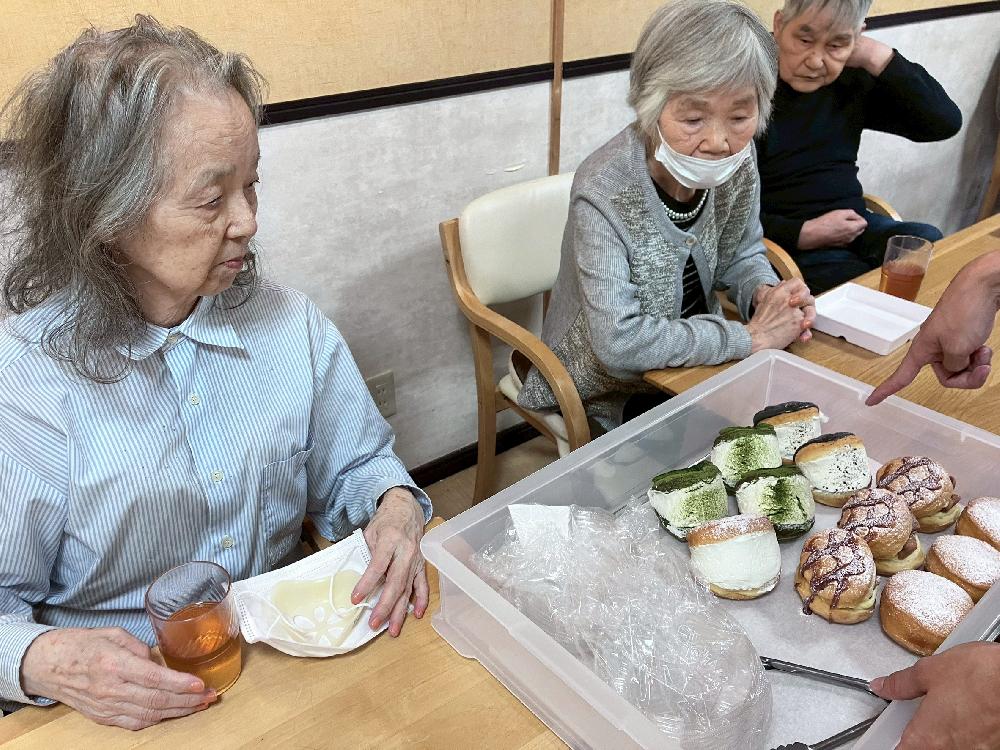 ドーナッツの種類は、生クリームの入ったシンプルな物・抹茶クリームドーナッツ・きいちごドーナッツなどがありました。皆さん、甘いものは大好きなので「美味しいわ」とおっしゃりながら黙々と召し上がられており、ご満悦なご様子が見受けられました。