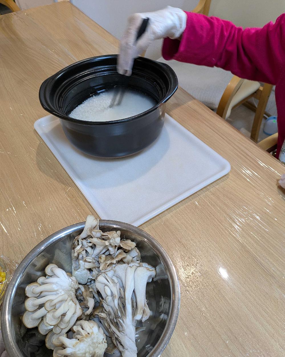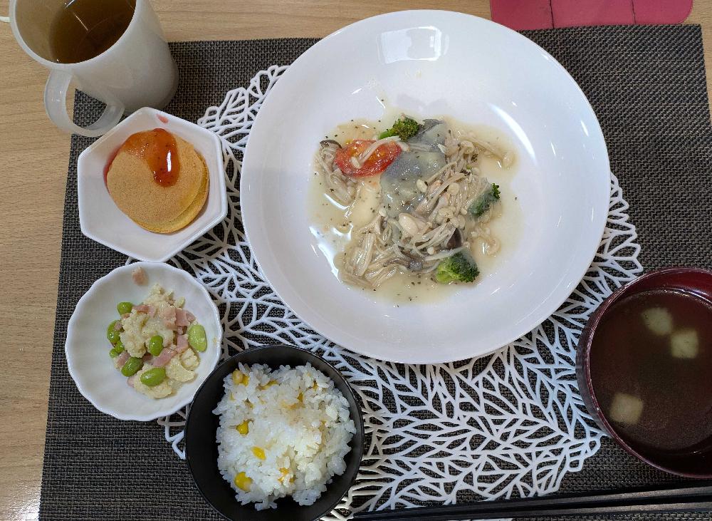 メニューは“土鍋で炊くバターコーンごはん、カリフラワーとベーコンのマリネサラダ、銀のひらすのハーブクリーム蒸し、コンソメスープ、そしてデザートにクリームブッセイチゴソース”