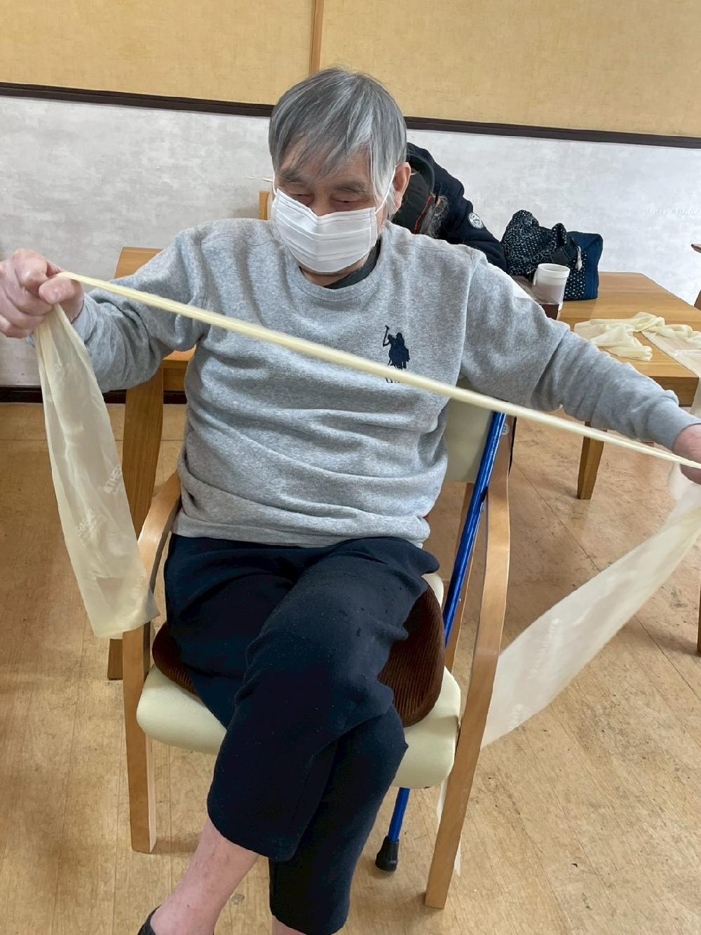 日頃のレクリエーション以上に(?)腕を大きく動かされ、良い運動にもなったようです。