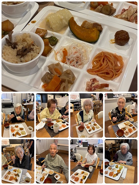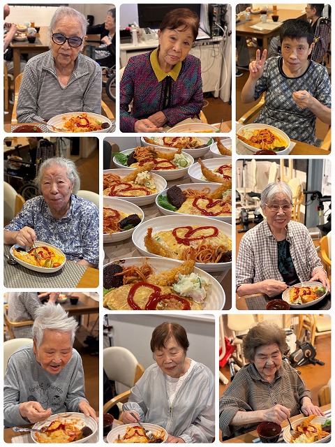 お昼は大好評の食レク!本日は職員によるボリューム満点ポークカレーにターメリックライス!こちらご利用者様のリクエストにお答えし ました☆他…身体も心も温まるコンソメスープ。豪華満腹大人気メニューでみなさま笑顔で大喜び♪ 食欲減退気味の方でもモリモリ召し上がって下さって免疫力up!次回も乞うご期待!