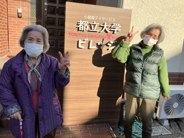 都立大学ビレッジはデイサービスです。お迎えから始まり、施設に到着してゆっくりして頂きます。皆様が集まったら、体操の時間です。まずは全身体操。筋力維持、転倒防止、腰痛対策などが含まれております。全身体操が終わったら、口腔体操です。歌体操やパタカラ体操を行い、咀嚼、嚥下機能の維持、向上の目的で行なっております。都立大学ビレッジは体操が大人気です。皆様は進んで参加していらっしゃいます。