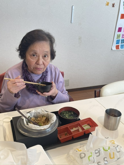 こうして、午前は進みます。口腔体操が終わり、すぐに昼食になります。食事は元気の元。皆様、いっぱい召し上がってくださいます。