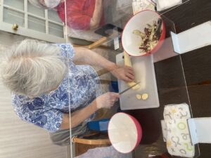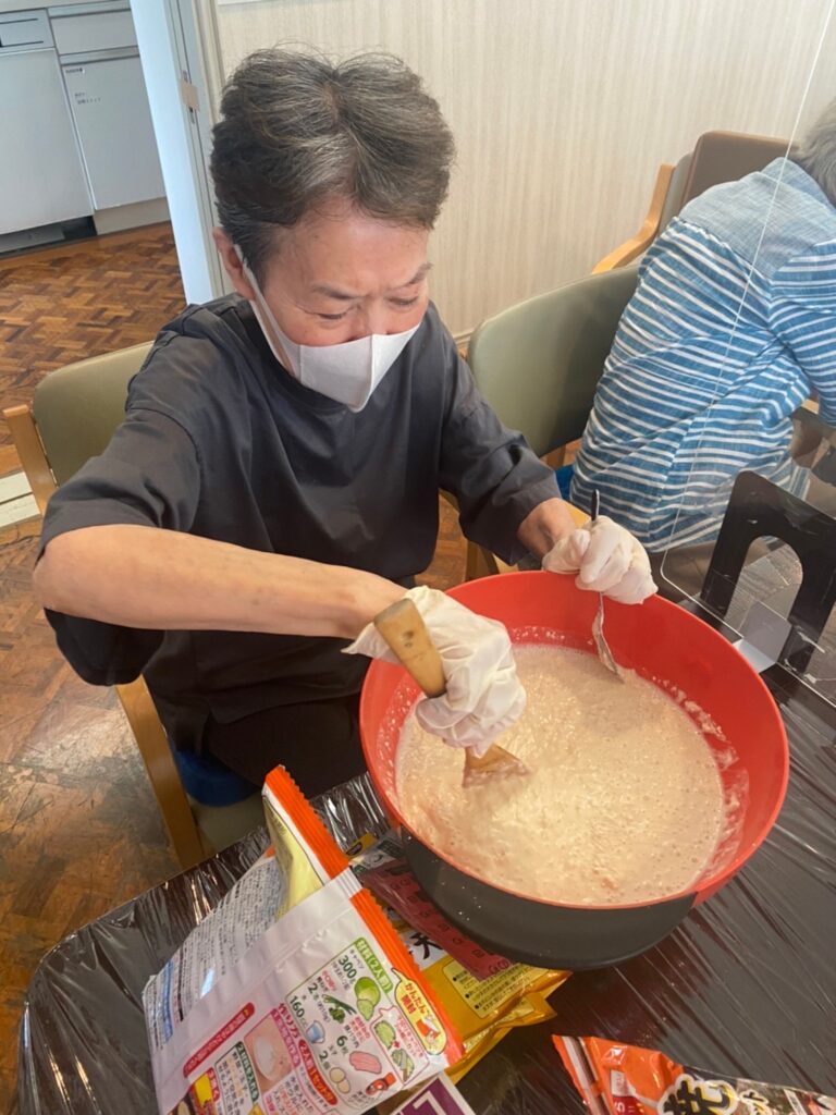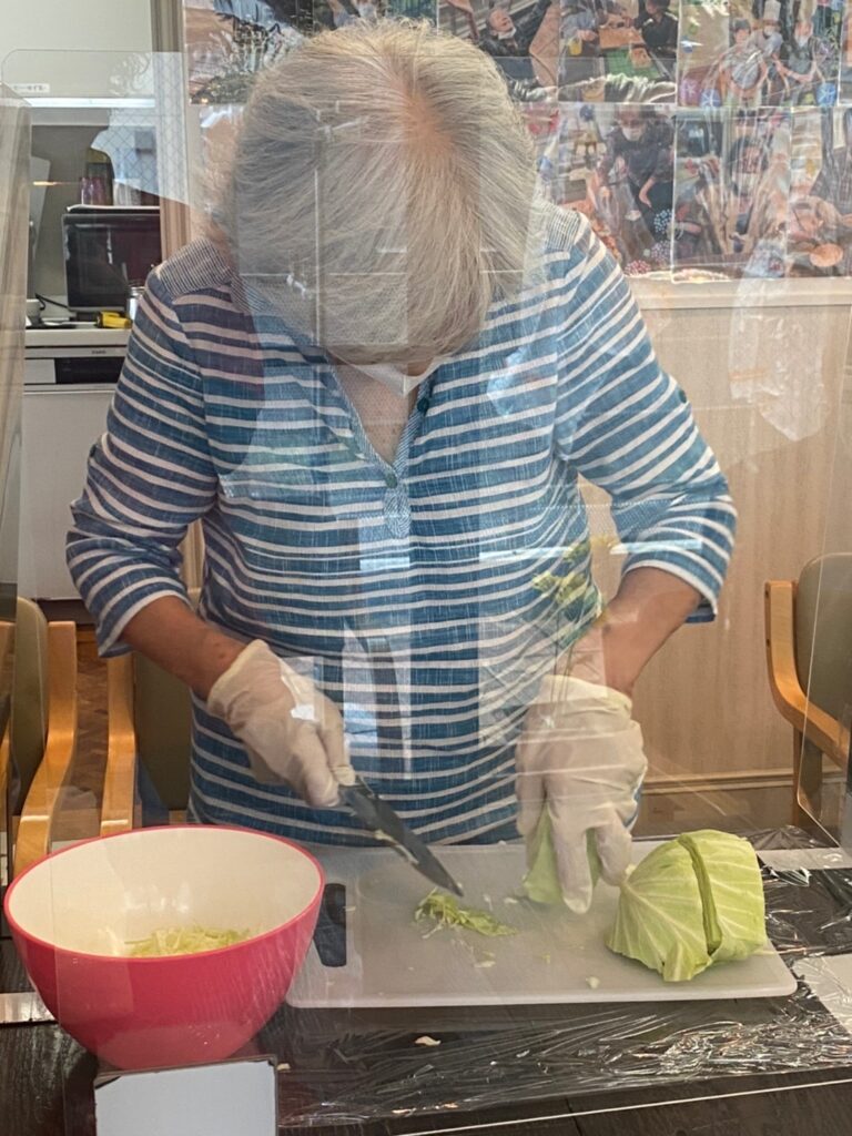 「一緒に調理してみたい。」→家では安全のため料理しなくなった。→手指機能改善→食べてもらう喜び