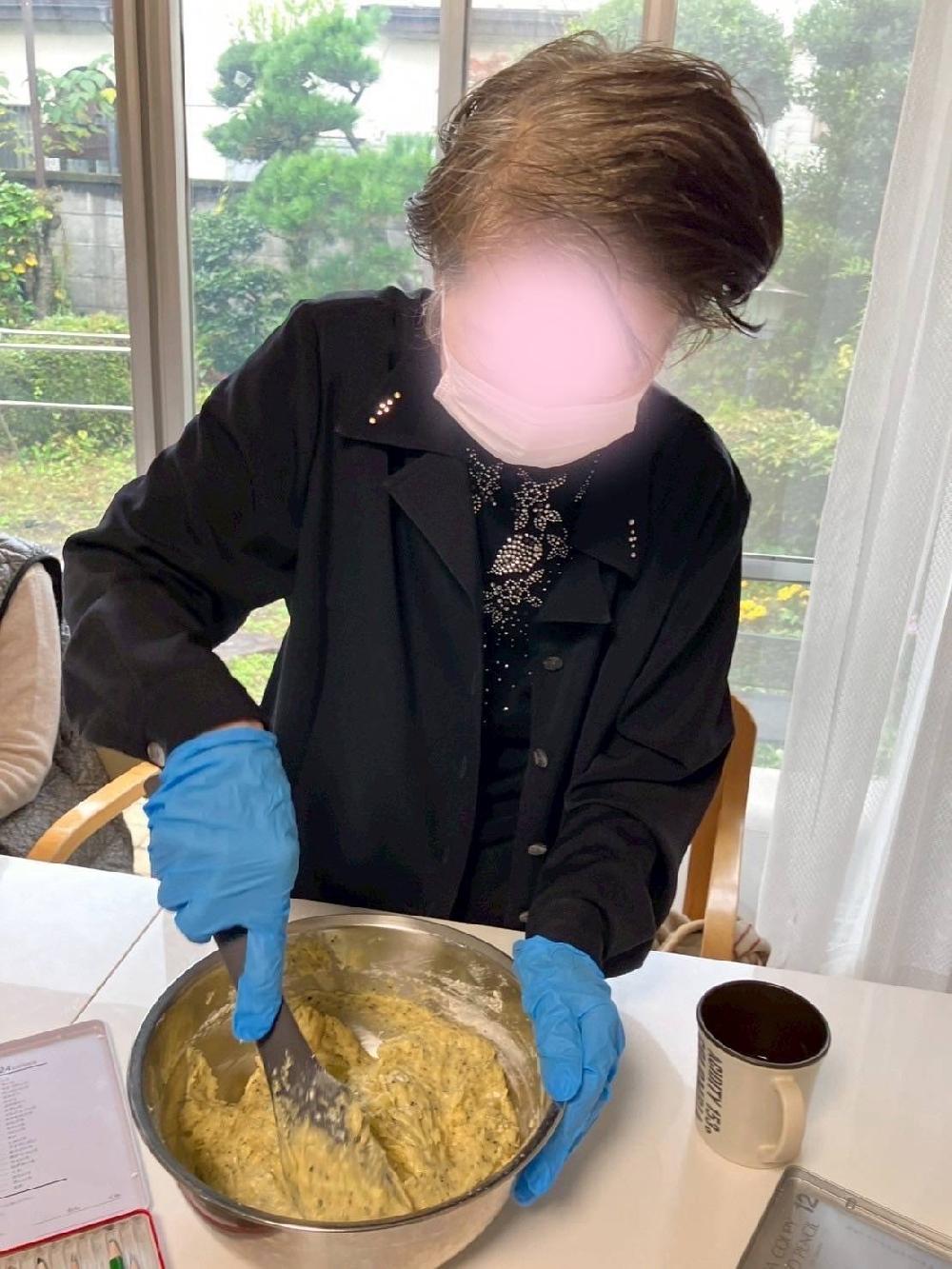 隣でプロさながらの力強い手つきで生地を練り混ぜるスタッフと、協力して作業を進める様子は、まるで本格的なお菓子工房のよう!