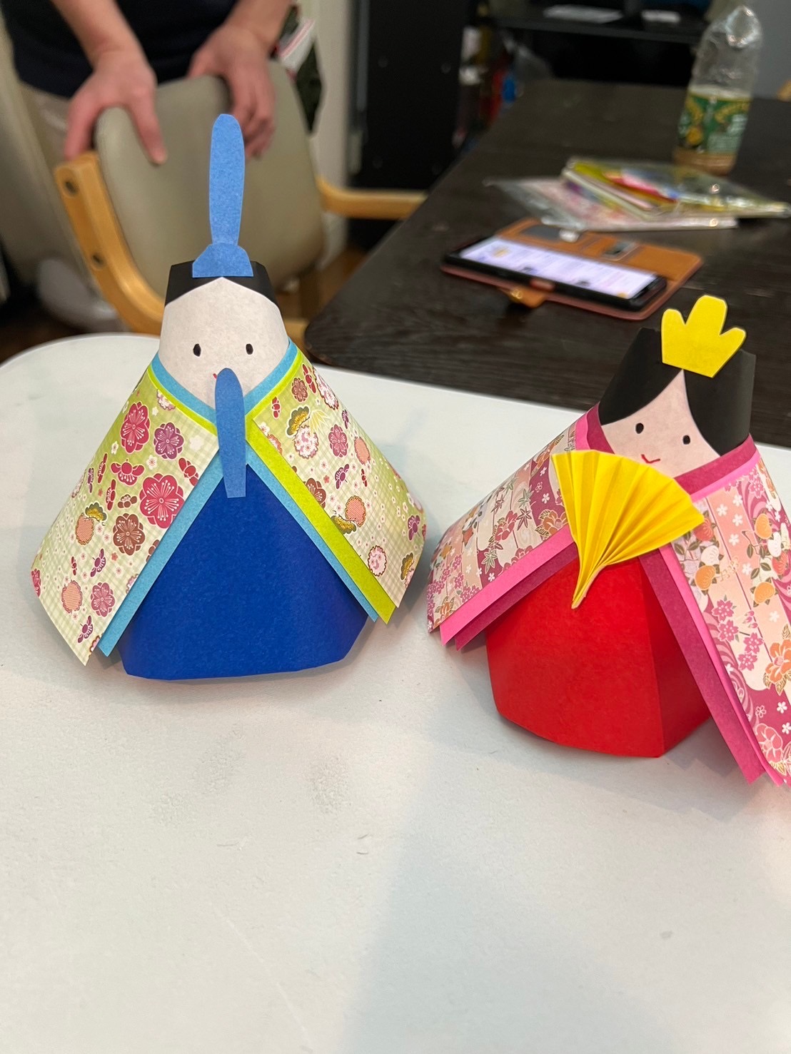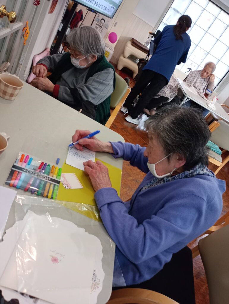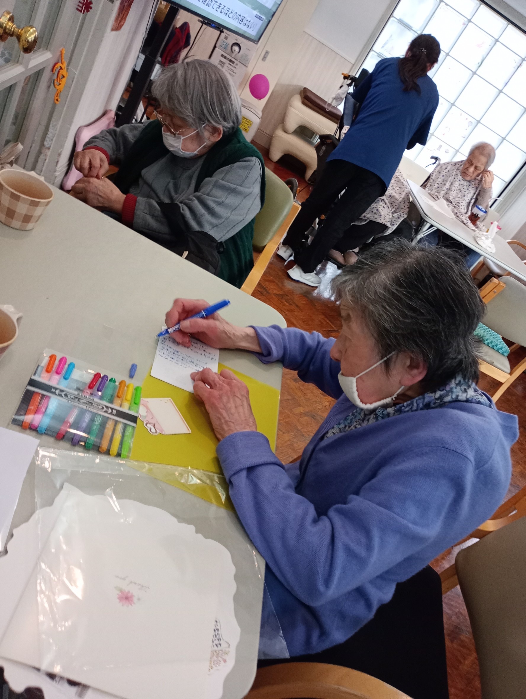 本日はカレンダー作りを行いました。藤の花を皆様に沢山作ってもらい、談笑を楽しみながらゆっくり作業してくれました。 三井