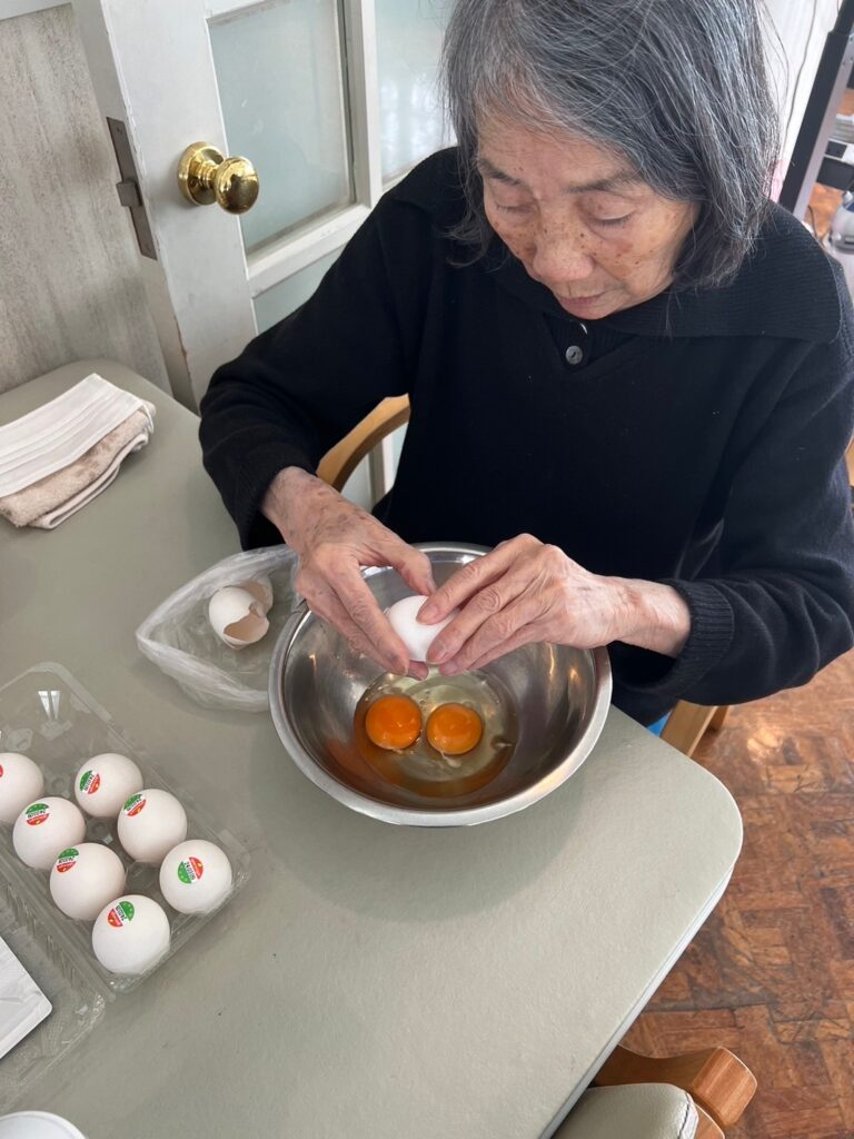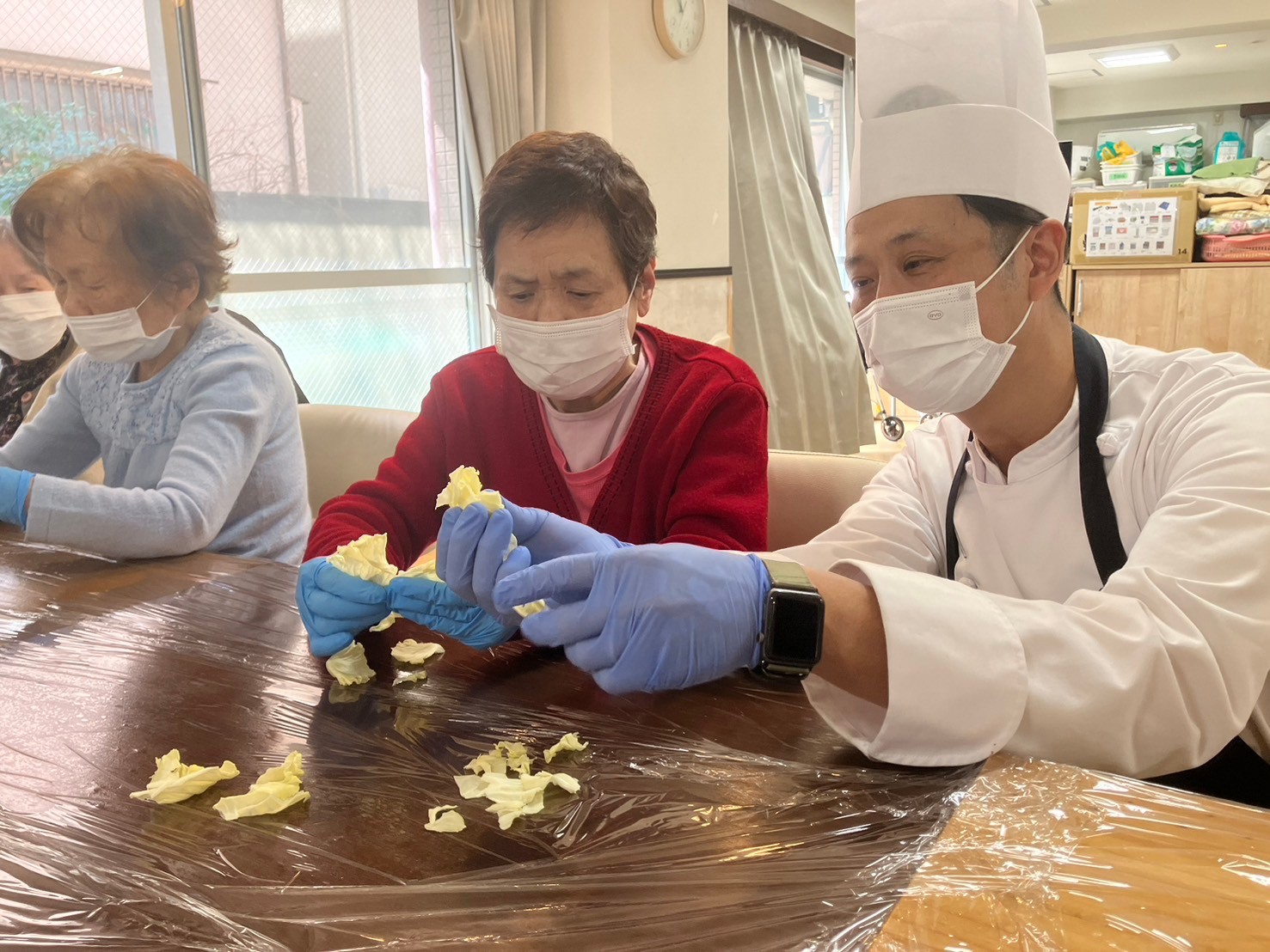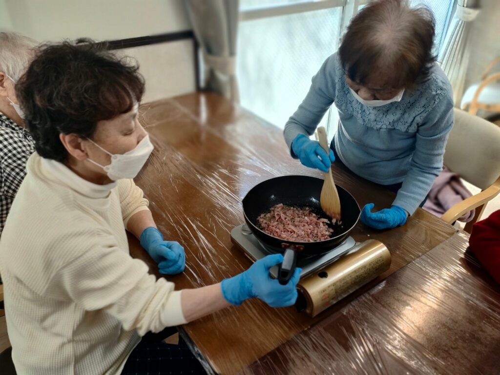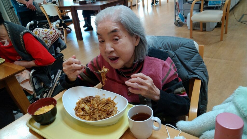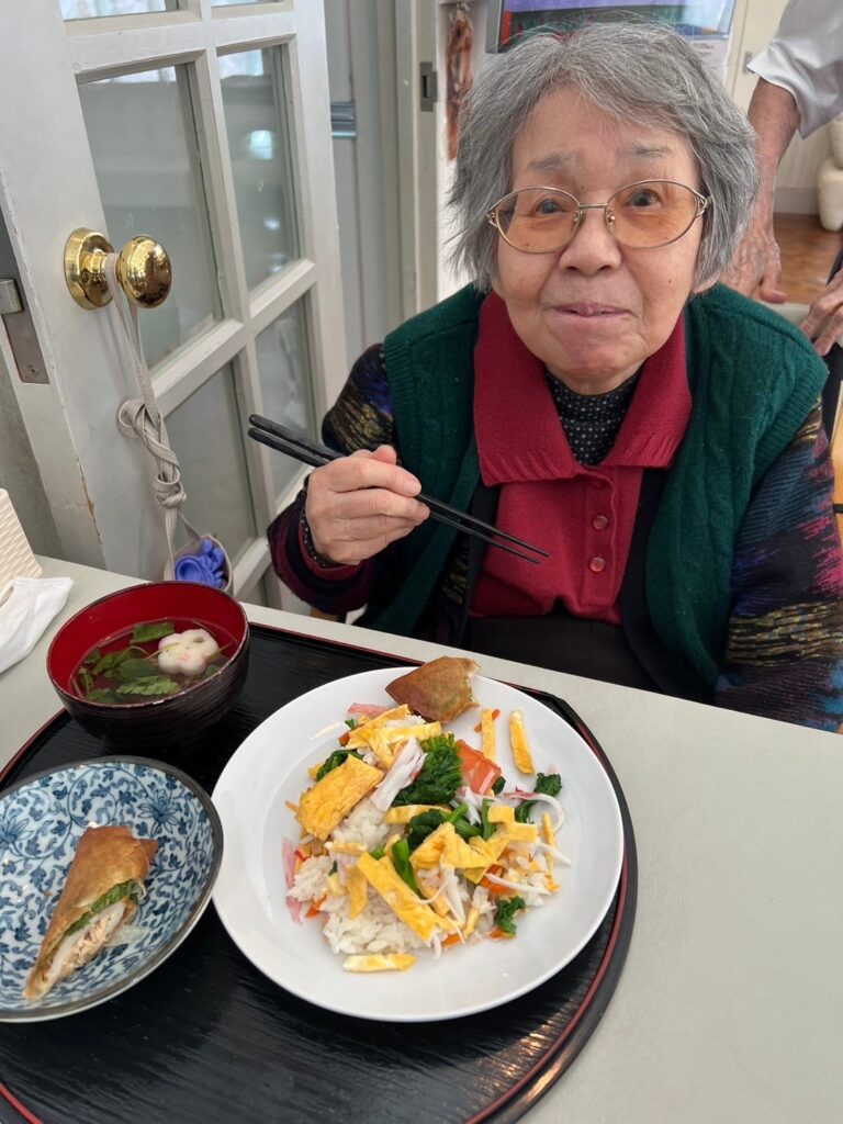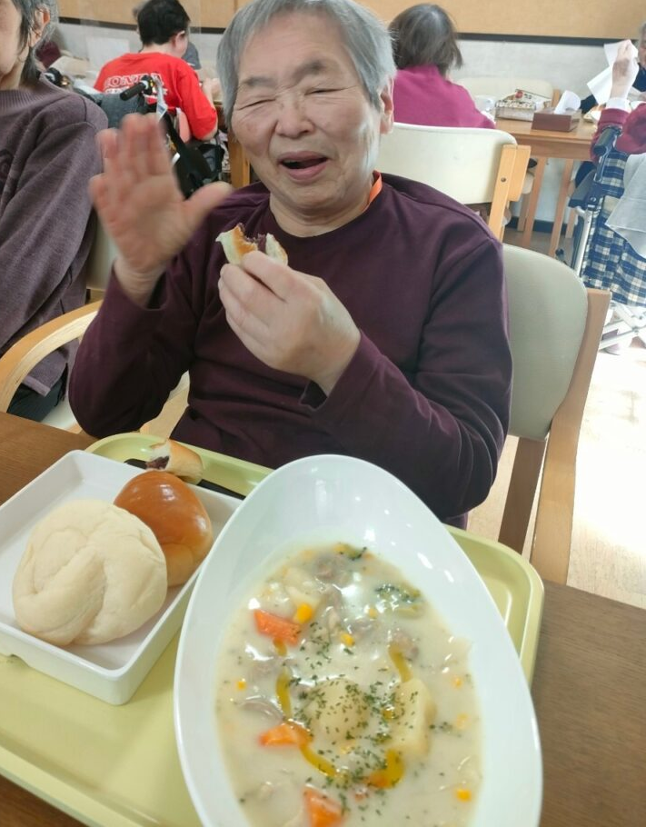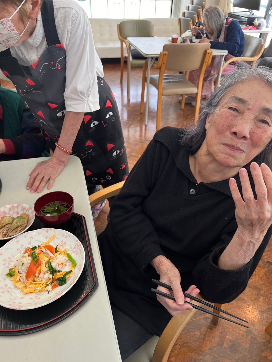 作っている所から「いい匂い」「美味しそう」ととても楽しみにされており、召し上がって「美味しい!」ととても喜ばれておりました。