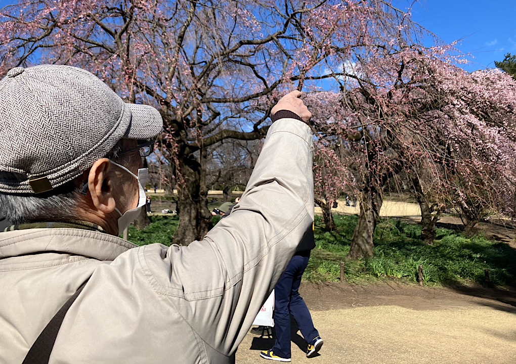 本日は桜を見にドライブへ、童謡の「さくら」を歌いながら少し歩いてお散歩も楽しんでおりました。
