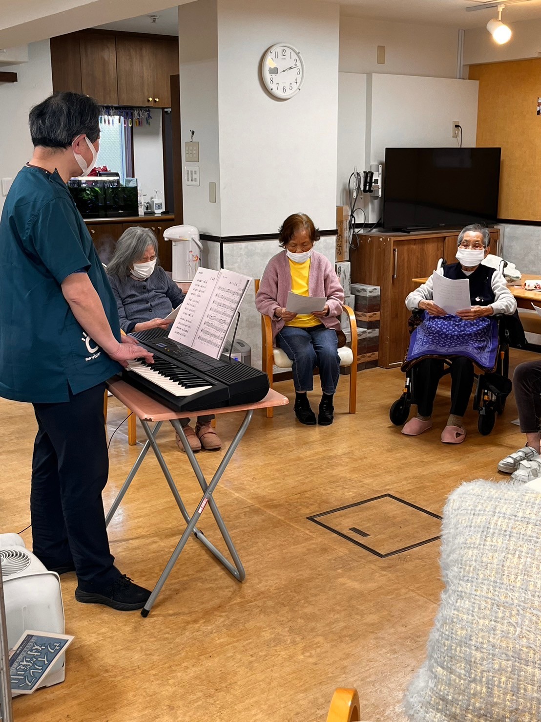 もう少しで100点の方はお家に計算ドリルを持って帰り「お家でもお勉強してくる」と仰ってくれました。その後は合唱もしております。 三井