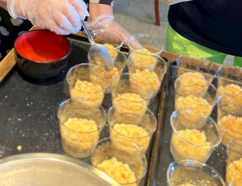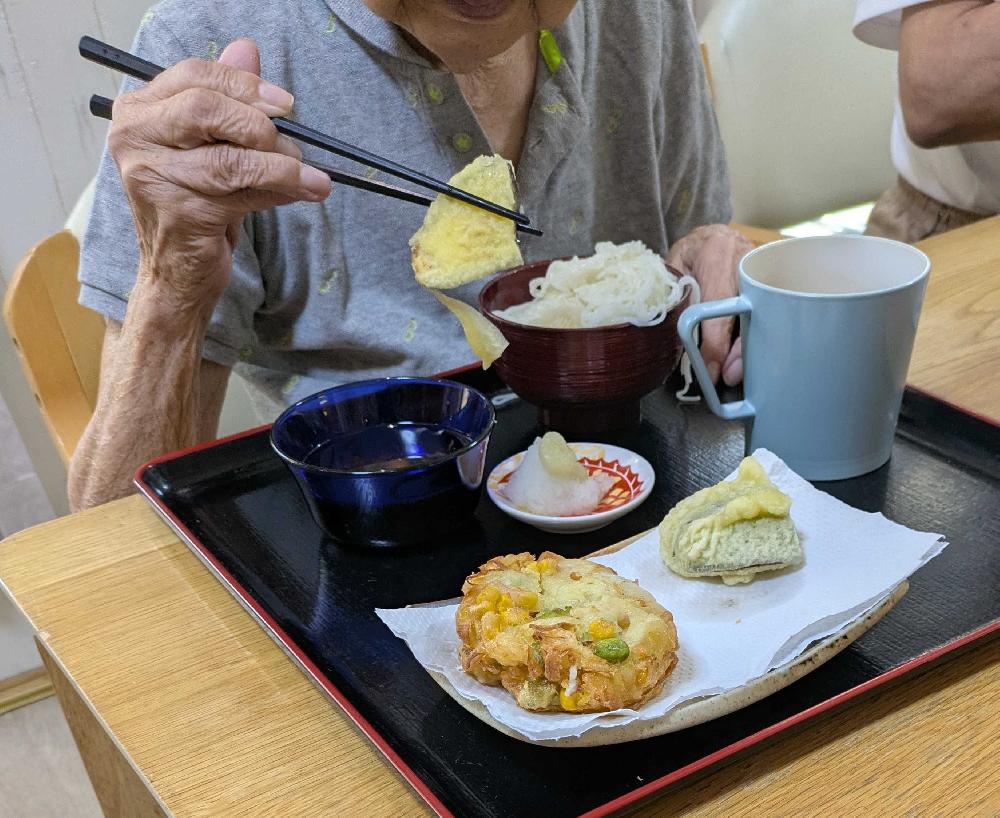 本日はお弁当ランチ!定番の家庭の味・大人気メニューでほっこり♪お肉が苦手な方のため、別メニューをご用意。豪華満腹コースでみなさまニコニコ笑顔で大喜び♪食レクをとても楽しみにして下さってる声が多いので、スタッフも嬉しく、ますます張り切ってます♪
