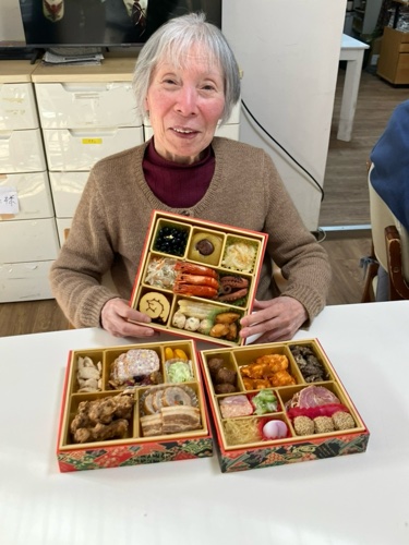 「どれにしようかなぁ」「これは縁起がいいね」と、お喋りに花を咲かせながら、一品一品ゆっくりと味わっていただきました。美味しいものを食べている時の皆さまの笑顔は、最高のお年玉でした(*´ω`*)