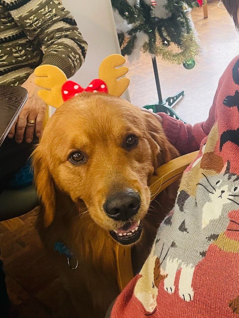 トナカイに扮した、セラピー犬ジーザス君も一緒に届けてくれました♡