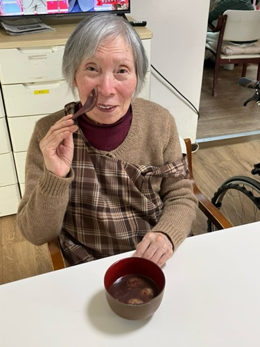 三が日は、昼食おせち、おやつぜんざいを召し上がって頂きました!「お正月らしくていいわね~!美味しい」とご満足いただきました♪